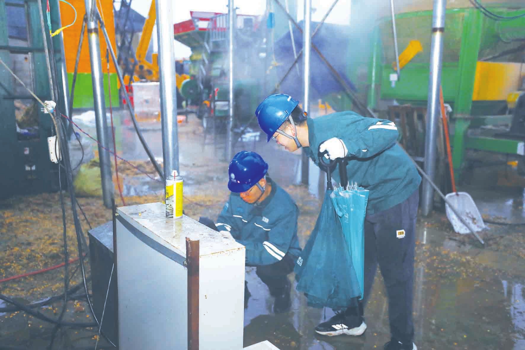 10月12日晚,武城县供电公司党员服务队来到该县种粮大户任兆同的粮食存放点,为其新购置的烘干设备排查隐患。为积极应对阶段性集中降雨天气,国网德州供电公司组建91支党员服务队,对全市218处粮食烘干服务点开展上门走访,主动了解生产用电需求,协助消除用电安全隐患。同时,“一户一策”建立服务点专属用电档案,对涉及的174条供电线路、232台变压器开展每日特巡,备足备齐应急发电设备,确保各服务点供电安全可靠。