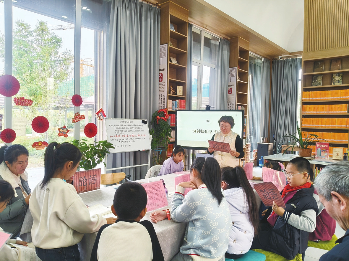 明德书屋寒绿园分馆内青少年共读国学经典