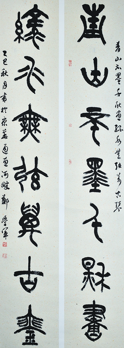 《青山 绿水》联。郑学军作