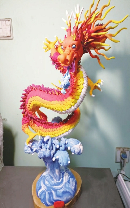 工具研发方面,他也下足了功夫。“传统工具很简单,就一个塑刀、剪子和梳子。”但随着人们审美水平的提高,传统工具已难以满足丰富的造型需求。王向东研发了手指状的工具、粗细不同的圆滚杠等,“用这些工具,能轻松压出纹理、挑出坑洼,造型更精致了。”他还总结出一套独特的技艺心得:“可以把平面创作规律嫁接到立体造型上,塑造形象时就能得心应手。”