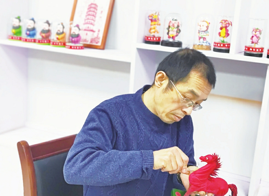 在县里各类展会上,他现场捏制人物,传统的钟馗、卡通的奥特曼等,都是他的拿手好戏,“以前主要塑造西游记人物、十二生肖,网络普及后,题材一下子拓展了,孩子们喜欢什么我就捏什么。”