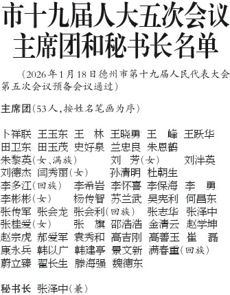 市十九届人大五次会议主席团和秘书长名单