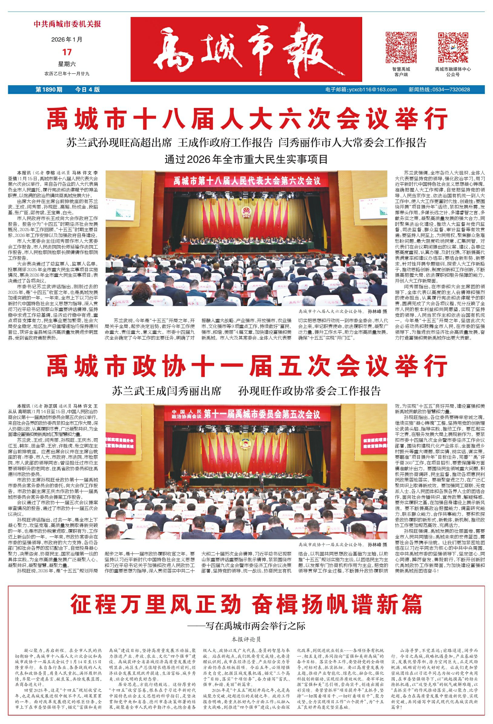 当前位置:禹城市报20260117期>> 第A1版:要闻